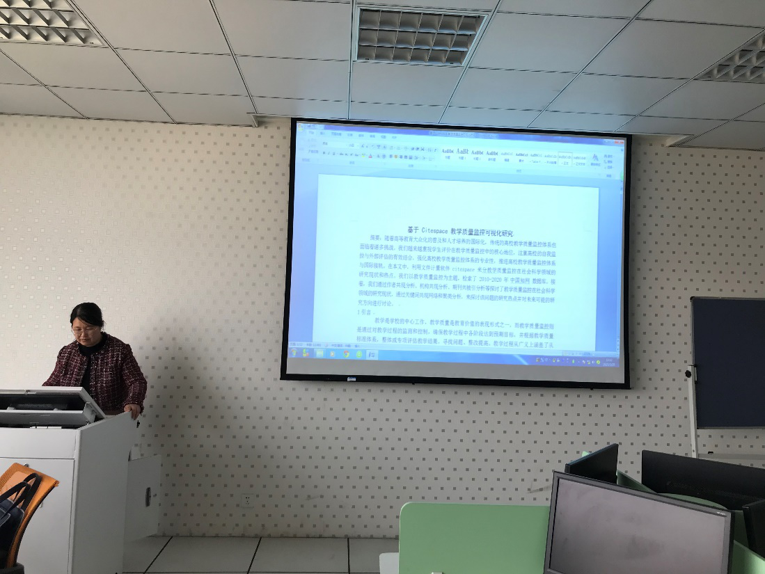 首先,李老師首先介紹了citespace的基本特點,并結合論文進行了講解。其次,通過介紹作者共現分析、機構共現分析、期刊共被引分析、關鍵詞來分析教學質量監控領域的研究現狀和熱點,接著對未來該領域可能的研究方向進行了討論。