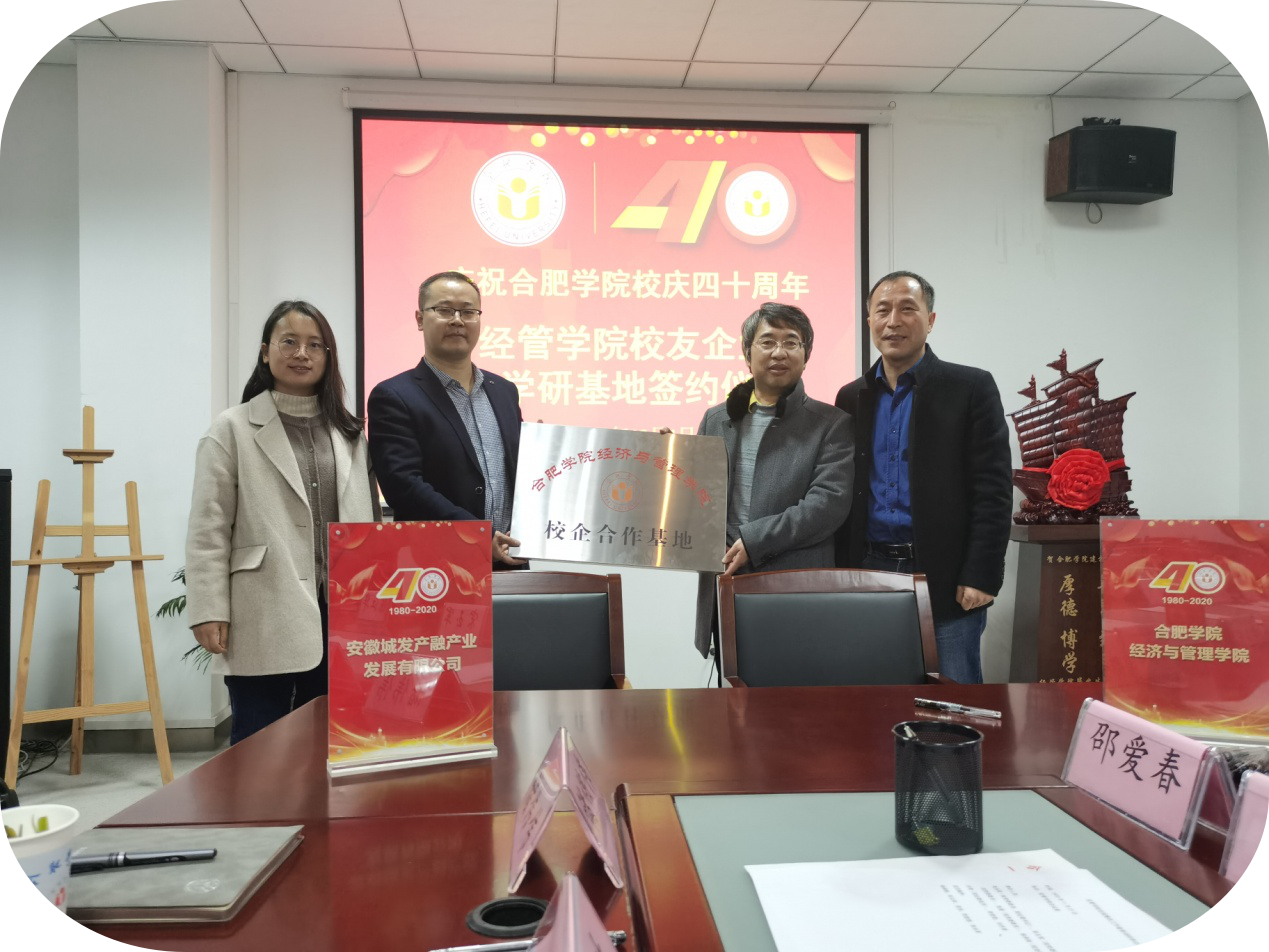為慶祝合肥學院四十周年校慶,2020年12月1日,經濟與管理學院校友企業產學研基地簽約儀式于我校一區博學樓B座二樓會議室順利舉辦。校方由經濟與管理學院院長陳江華、副院長宋玉軍4個主任(副主任)王曉艷、汪本強尚慶梅、邵愛春、鄭珊珊等以及各專業教研室主任10名在讀學生代表參加。擬合作8個企業代表均是我院已畢業成功創業的返校校友。