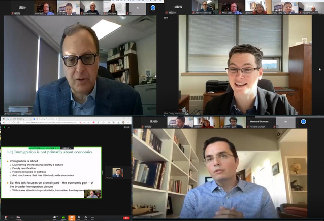 來自加拿大大都會項目和秘書處名譽主席Howard Duncan博士、來自美國賓夕法尼亞大學沃頓商學院終身講席教授Exequiel (Zeke) Hernandez博士與來自加拿大蒙特利爾 HEC 大學的經濟學教授Benoit Dostie分別作了題為“人口減少與數字僑民”、“重新思考移民對經濟的影響”與“雇主政策和移民-土著收入差距”的主旨演講。與會嘉賓進行了精彩的線上討論。