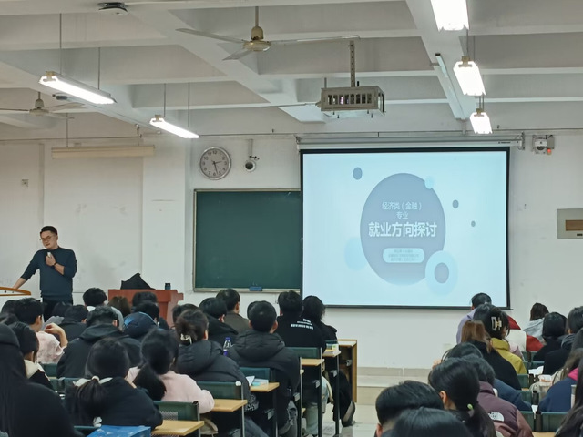 講座中,邵品德結合自身在金融行業深耕數十年的實際經歷,從行業介紹、自我認知、未來規劃與目標三個方面進行闡述,向同學們詳細介紹了證券行業、銀行業、保險業的崗位設置、薪資待遇、專業要求等情況,并對經濟類專業的就業方向展開了深入探討。他提到,要對自我有清晰認知,重視基層經歷,抓住行業的風口,關注長遠發展。此外,他通過講述自身的職業發展,鼓勵同學們樹立積極向上、頑強拼搏的健康心理狀態,在學習和未來的工作中銳意進取、勇攀高峰。在交流互動環節,同學們踴躍發言,邵品德耐心細致地解答了各種提問,現場氣氛熱烈、場面活躍,同學們紛紛表示受益匪淺。