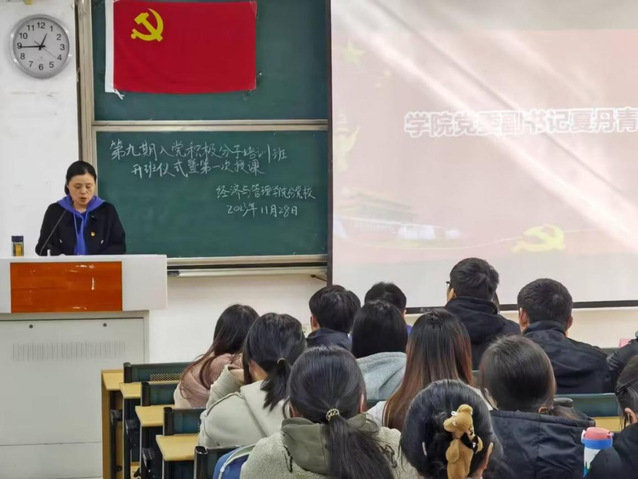 最后,由經(jīng)濟(jì)與管理學(xué)院黨委副書記夏丹青作動員講話。她希望同學(xué)們珍惜本期黨課學(xué)習(xí)機(jī)會,提高自身思想政治素質(zhì),端正入黨動機(jī)。