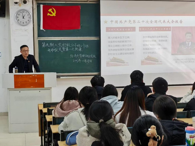 為積極開展學(xué)院黨員發(fā)展工作,培養(yǎng)愛黨愛國的社會主義接班人,11月28日中午,經(jīng)濟(jì)與管理學(xué)院分黨校第九期入黨積極分子培訓(xùn)班開班典禮暨第一課于一期4棟107教室順利舉辦,經(jīng)濟(jì)與管理學(xué)院黨委書記倪澤強(qiáng)、黨委副書記夏丹青、經(jīng)濟(jì)與管理學(xué)院分黨校校務(wù)委員會成員及172名入黨積極分子參加此次大會。