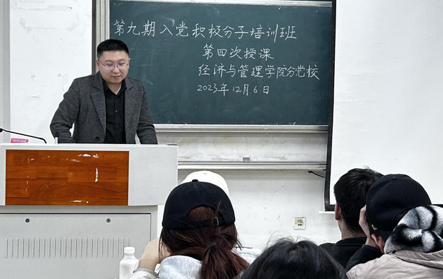 2023年12月6日中午,經濟與管理學院分黨校第九期入黨積極分子培訓班第課于一期4棟107教室如期舉行。本次培訓班由經濟與管理學院組織員、金融學學生黨支部書記陳維浩主講,我院全體第九期入黨積極分子參加了此次課程。