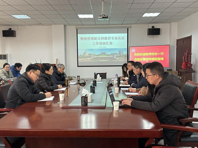 為切實加強學校新文科專業內涵建設,提升專業建設水平,推動學校教育教學高質量發展,2023年12月20日,副校長陳秀前往經濟與管理學院調研物流管理新文科教育專業認證推進工作,教學質量監控與評估處處長儲忠、副處長王玉陪同,經濟與管理學院陳江華院長、倪澤強書記、于娜副院長,物流管理專業負責人王曉艷教授和專業骨干教師參加會議,會議由陳江華院長主持。