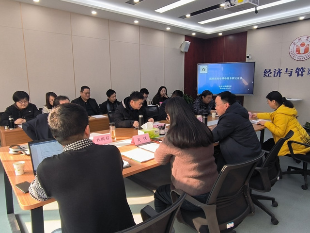 會議分為兩個階段。第一階段,由顧晨嬰老師匯報擬申報國際商務專碩點的準備情況。顧老師從需求分析與專業學位簡介、人才培養、人才培養的環境與條件、培養目標及基本要求等多方面介紹了申報工作準備情況。會議第二階段,四位專家對國際商務專碩點的申報材料進行評價和論證。各位專家首先對目前專業申報的條件支撐給予了肯定,同時也指出申報材料仍有改進空間,提出很多合理化意見和建議,如:突出申報的必要性以及我院優勢、擴大骨干教師隊伍、加大人才培養力度、培養一批特色師資力量、著力創造出更加突出的教育成果,營造更加良好的管理環境等。