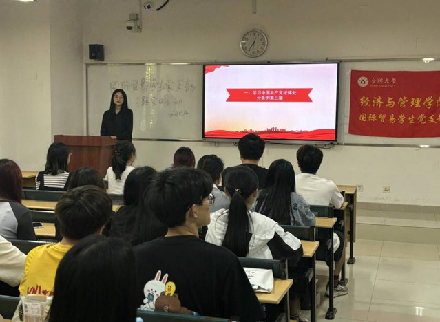 工商管理學生黨支部組織入黨積極分子交流研討了《中國共產黨紀律處分條例》,入黨積極分子就《條例》中的內容進行了分享與交流。會計學學生黨支部負責人為入黨積極分子詳細介紹了《條例》的背景與內容,強調了黨組織紀律的重要性。經濟學學生黨支部組織入黨積極分子集中觀看了介紹黨章黨規的相關視頻,并學習了《條例》相關內容。國際貿易學生黨支部組織入黨積極分子深入學習了《條例》第三章的內容。金融學學生黨支部負責人帶領入黨積極分子學習了《條例》第一章總則的相關內容。物流與供應鏈學生黨支部帶領入黨積極分子學習了《條例》新增、修改的重點條文,隨后開展了黨員先鋒小課堂活動。研究生黨支部重點對《條例》中違紀與紀律處分、紀律處分運用規則等內容進行了學習。