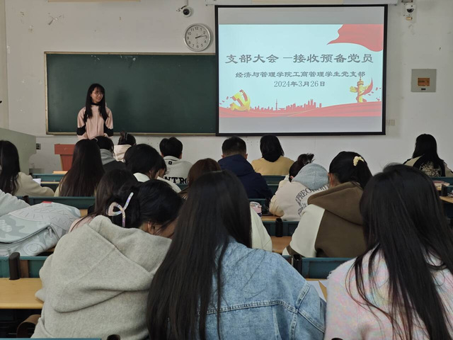 為響應黨中央號召,踐行黨的組織路線,深入推進黨員隊伍建設,2024年3月26日,經濟與管理學院工商管理學生黨支部在博學樓C座101室召開接收預備黨員支部大會,迎接方霞、許可兩位同志加入支部大家庭。