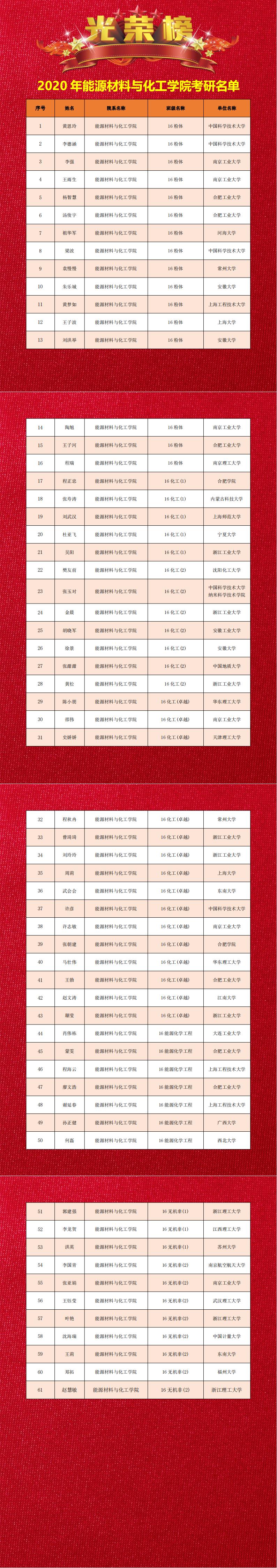 材化學(xué)院2020年考研信息
