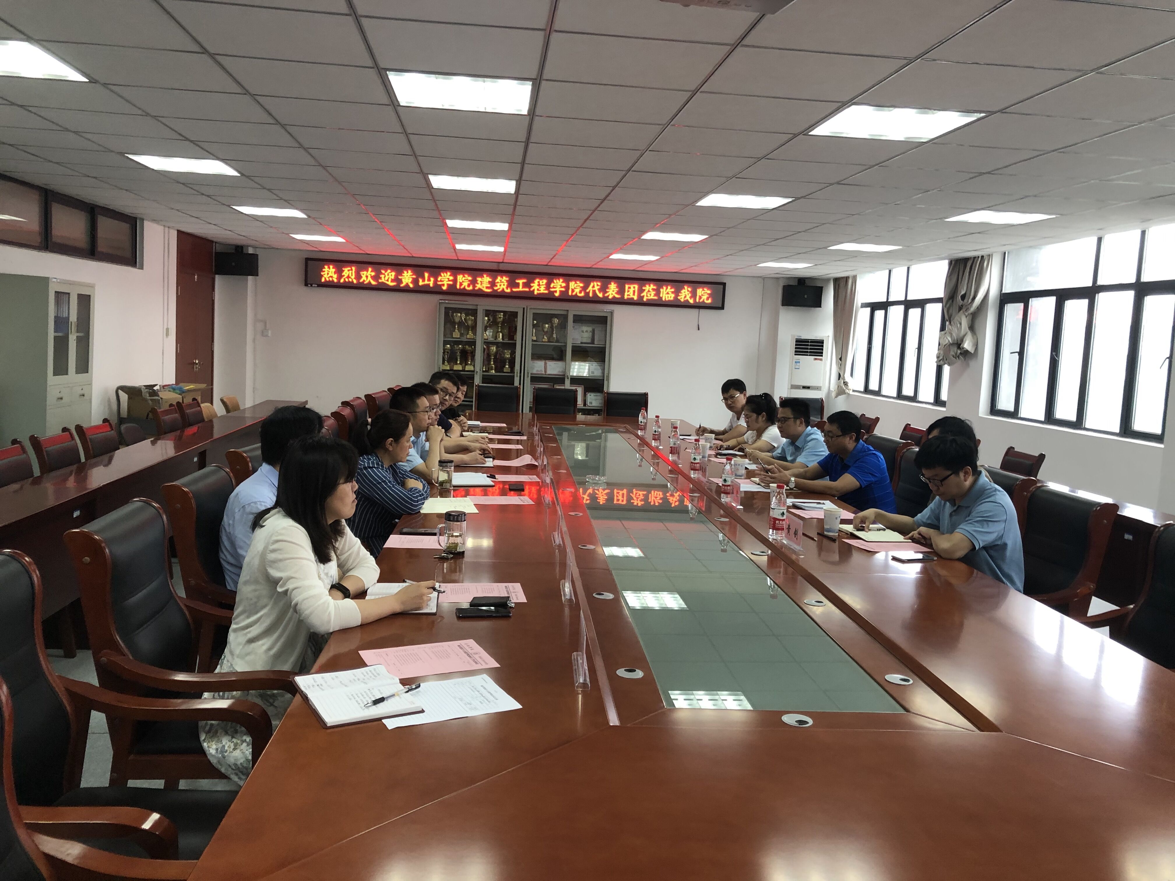 會上,華建兵副院長首先向來賓表示熱烈的歡迎。他從我院建設情況、專業方向以及師資力量等方面介紹了我院三個系部、一個實驗實訓中心以及未來專業增設的情況。隨后,周院長也就黃山學院建筑工程學院以及各教研室的基本情況做了大致介紹。雙方還就接下來要進行的專業評估和專業認證、碩士點建設和實驗室建設等方面展開了重點交流。周院長對我院實驗室建設和科研團隊方面的工作予以肯定,并邀請我院去黃山學院進行交流考察。