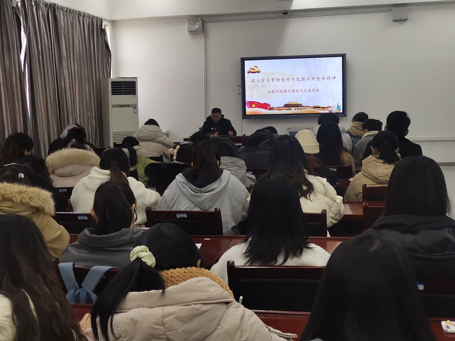 20211227日、1228日,城建學院院長華建兵和黨委書記胡曉軍也分別面向學院不同學生群體進行了黨的十九屆六中全會精神學習的專題宣講。參加學習人員包括城建學院全體研究生、城建學院全體學生黨員和入黨積極分子。宣講會上重點學習了《關于<中共中央關于黨的百年奮斗重大成就和歷史經驗的決議>的說明》和《中共中央關于黨的百年奮斗重大成就和歷史經驗的決議》。專題宣講會旨在傳達黨的十九屆六中全會精神,進一步深化對習近平總書記關于黨的百年奮斗重大成就和歷史經驗重要論述綜述的理解。