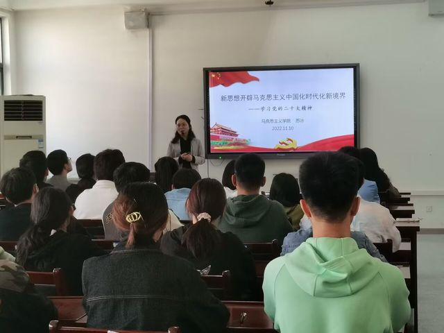 馬克思主義學(xué)院副院長(主持工作)蘇冰教授以題為“新思想開辟馬克思主義中國化時代化新境界——學(xué)習(xí)黨的二十大精神”的報告為新的入黨積極分子為學(xué)員概括講解了二十大報告的前言主體部分和結(jié)語及二十大報告的邏輯結(jié)構(gòu)。重點為學(xué)員解讀了20大報告中的第二部分“開辟馬克思主義中國化時代化新境界”,講述了十八大以來,我們黨勇于進(jìn)行理論探索和創(chuàng)新,取得重大理論創(chuàng)新成果,開辟了馬克思主義中國化時代化新境界。在此次黨課中,學(xué)員們受益匪淺,作為新時代的大學(xué)生,要進(jìn)一步牢記歷史,努力學(xué)習(xí)。去團(tuán)結(jié),去拼搏,去創(chuàng)造,共同擔(dān)起新時代的重任!(城市建設(shè)與交通學(xué)院  撰稿人:韓冰審稿人:李書群)
