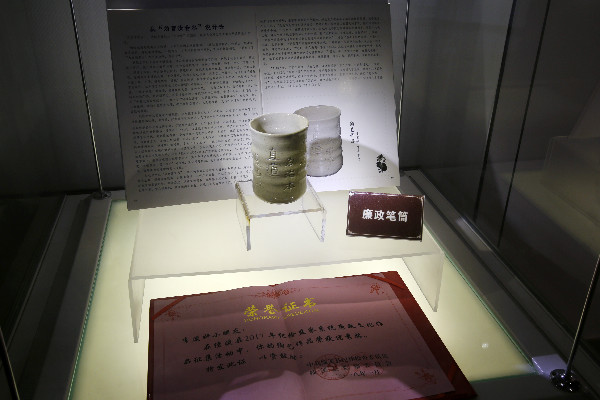 李夏同志生前陪同女兒一起制作的廉政筆筒