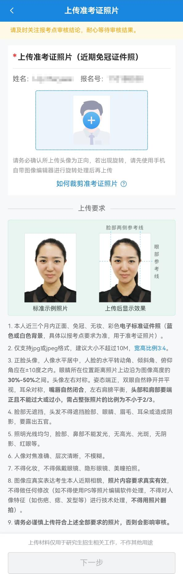 考生登錄系統后需根據系統提示按要求上傳以下兩個必須的材料原件(不得上傳復印件):