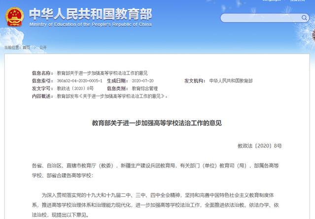 教育部關于進一步加強高等學校法治工作的意見