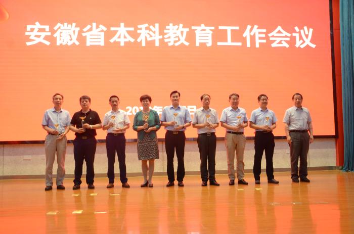 隨后,由中國科學技術大學、合肥工業大學、安徽大學、安徽師范大學、安徽農業大學、安徽工業大學、安徽理工大學、安徽建筑大學、合肥學院以及滁州學院十所高校代表依次做經驗交流發言。近年來,合肥學院堅持“以本為本,四個回歸”,建立“以學為中心”教學新機制;堅持立德樹人,把思想政治教育貫穿本科教育全過程;突破學科定勢,全面推進模塊化課程建設;實施俱樂部制改革,深化體育和美育教育;注重基層教學組織建設,夯實教學工作基礎;深化產教融合,協同育人,探索“雙元制”高等教育新模式,連續三屆榮獲4項國家級教學成果獎,其中一等獎2項。在“振興本科教育榜樣處室”和“振興本科教育榜樣處長”風采展示環節,儲常連依次為十所高校頒獎,合肥學院教務處和教務處處長王曉峰獲表彰。