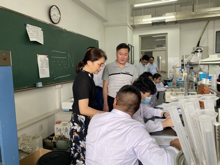 檢查期間,正值返校本科生上實驗課。陳秀隨堂聽課,與任課教師、學生互動交流,了解實驗課開展狀況,并叮囑要注意實驗安全與衛生,特別要規范危險化學品的儲存、使用,遵守實驗室安全制度。