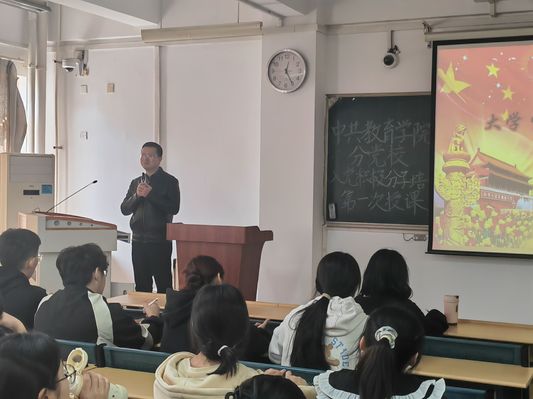 為準確深刻把握黨的二十屆三中全會提出的新思想新話語,做好我院學生入黨積極分子的教育培養工作,進一步端正其入黨動機,提升黨性覺悟和政治素養,不斷提高入黨積極分子的政治判斷力、領悟力和執行力教育學院分黨校于202411月5中午12:30,在三棟301教室舉行第21期入黨積極分子培訓班開班儀式并邀請合肥大學學工部、武裝部部長,學生處處長丁增云進行第一次授課。