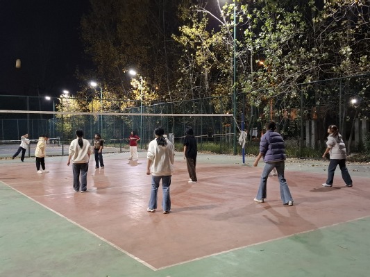11月29日晚19時,教育學院和城市建設與交通學院女排比賽在一期4號排球場地順利舉行。