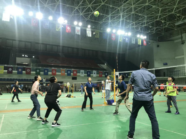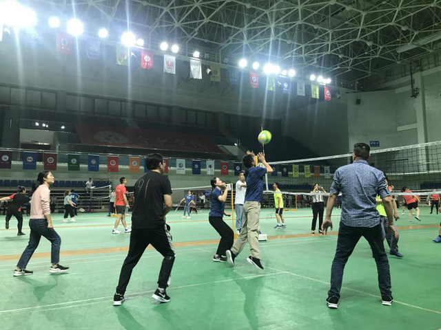 在賽前為數不多的幾次訓練中,老師們在繁忙的教學與科研工作之余,按時參與每次訓練活動。參加氣排球比賽的老師,大部分沒有經過專業訓練,主力隊員孫以中老師認真負責,從比賽規則、發球、傳球,到組織進攻,耐心地為每位隊員講解,帶領老師們盡快適應氣排球的比賽節奏。