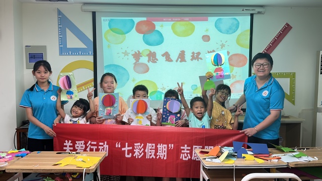 為豐富兒童的業(yè)余文化生活, 78日,合肥學(xué)院教育學(xué)院七彩童年,你相伴三下鄉(xiāng)團隊來到濱湖和園社區(qū)開展社會實踐活動,志愿者高凡和王欣悅為孩子們帶來做夢想之屋 起未來之航”——氣球小木屋這一課程。支教活動已經(jīng)進行到第二周,隊員們教學(xué)熱情不減,繼續(xù)為這里的孩子們準(zhǔn)備生動有趣的課程,力圖讓孩子們的假期因隊員們的到來而更加豐富多彩。