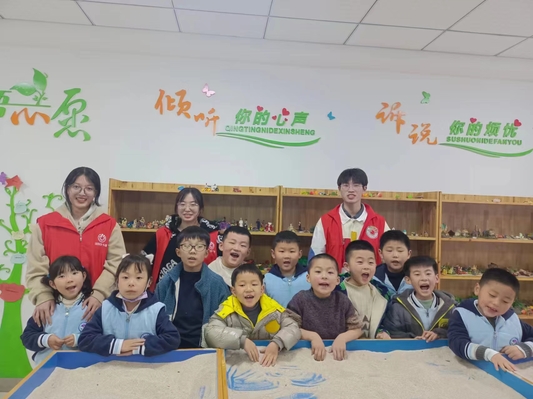 3月20日下午,教育學(xué)院陽光心理志愿服務(wù)隊前往欣園社區(qū)為小朋友們開展以“一沙一世界,一盤一未來”為主題的沙盤體驗活動。