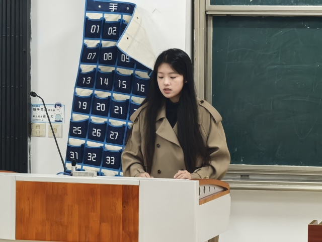 首先,古艷從“歷史沿革”角度引入,勉勵當代青年要傳承先輩們的精神火炬,于時代浪潮中奮勇啟航。同時,“理論內涵”為切入點,引領同學們深入探討“青年運動發展”的作用與意義,強調大家堅定理想信念,積極投身實踐鍛煉。接著,圍繞“青年力量對社會進步貢獻主題,從青年創新驅動發展、青年志愿服務社會、青年文化傳承與創新和青年國際交流使者四個方面進行深入講解,結合實例深入淺出地講授基層實踐經驗的重要性。最后,闞欣月呼吁青馬班全體成員,在這充滿機遇與挑戰的時代,傳承先輩們的拼搏精神,在科技創新的前沿不斷探索。
