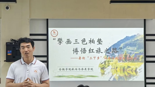 會(huì)議伊始,孫靜宇老師對(duì)本次為期七天的實(shí)踐活動(dòng)做了簡(jiǎn)要的總結(jié),無論是傳統(tǒng)村落月克沖、徽派古宅范仲淹紀(jì)念館,還是紅色教育基地英烈山等,所走過的每一個(gè)地方,參加的每一次活動(dòng),成員們都表現(xiàn)出極大的積極性。本次社會(huì)實(shí)踐活動(dòng)也取得了豐碩的成果,我院與廣德市柏墊鎮(zhèn)政府搭建起了校地合作“新平臺(tái)”并舉行了授牌儀式,合肥學(xué)院團(tuán)委副書記李妍妍為《合肥學(xué)院大學(xué)生社會(huì)實(shí)踐基地》授牌;合肥學(xué)院旅游與會(huì)展學(xué)院院長(zhǎng)宋玉軍為《合肥學(xué)院旅游與會(huì)展學(xué)院產(chǎn)學(xué)研實(shí)踐教學(xué)基地》授牌。接著,孫靜宇老師提出要將所學(xué)所悟與實(shí)踐相結(jié)合,把專業(yè)知識(shí)融入到社會(huì)實(shí)踐中并通過實(shí)踐的方式帶動(dòng)專業(yè)學(xué)習(xí)。他也鼓勵(lì)同學(xué)們能夠做到知行合一,在實(shí)踐中成長(zhǎng),在奉獻(xiàn)中成才,堅(jiān)定理想信念,傳承紅色精神。大家也表示會(huì)將專業(yè)知識(shí)及新思想踐行于社會(huì),在服務(wù)社會(huì)中展現(xiàn)當(dāng)代青年的時(shí)代責(zé)任與時(shí)代擔(dān)當(dāng)。為建設(shè)美麗和諧的鄉(xiāng)村與社會(huì)貢獻(xiàn)自己的一份青春力量。最后,孫靜宇老師指出“三下鄉(xiāng)”并非短暫性的活動(dòng),需要持續(xù)跟蹤,把實(shí)踐活動(dòng)持續(xù)做好做實(shí)成員們要做好后續(xù)的相關(guān)工作,并希望同學(xué)們?cè)谡{(diào)研報(bào)告的撰寫、新聞報(bào)道、視頻的宣傳等后續(xù)工作中能夠做到始終持有高度的責(zé)任心和一絲不茍的態(tài)度,保質(zhì)保量的完成本次社會(huì)實(shí)踐活動(dòng)的工作。