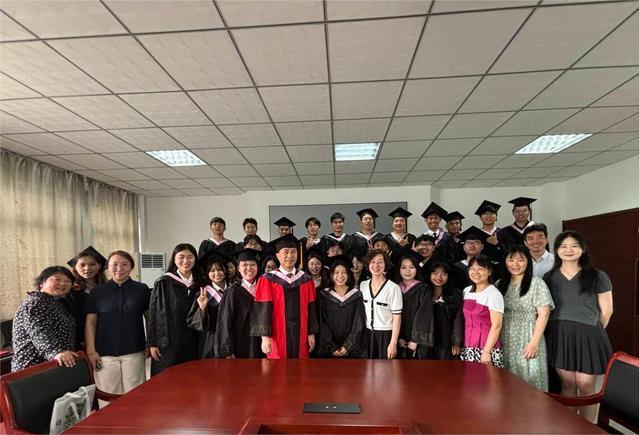 隨后,黃雄英書記和宋玉軍院長為畢業(yè)生代表頒發(fā)學(xué)位證書撥穗正冠并合影留念。