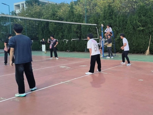 當(dāng)一聲清脆的哨響拉開比賽的序幕,運動員們展開了激烈的比拼。隨著生物院鏗鏘有力的發(fā)球,全場氣氛瞬間被引燃,加油聲、吶喊聲絡(luò)繹不絕。彩繩飛揚,排球場上一派緊張熱烈的歡騰景象。即使在你來我往的防守與發(fā)球下,學(xué)院以較小分差落后于教育學(xué)院,但學(xué)院的男排隊員們依舊情緒高漲,在重整旗鼓過后以驚險的分?jǐn)?shù)差距追上,在加時賽取得第一場比賽的勝利。隨著第二場比賽開始,各院男排隊員陸續(xù)入場,緊張的氛圍彌漫在賽場上。當(dāng)哨聲的再度響起,男排隊員們沉著冷靜,積極應(yīng)對,在教育院分?jǐn)?shù)的步步逼近下調(diào)整心態(tài),穩(wěn)定發(fā)揮,順利拿下整場比賽的勝利。