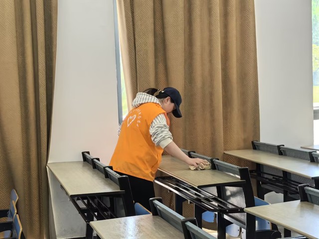 活動開始前,各負責人對參與人員進行了詳細的任務分配。在清掃過程中,大家分工明確、配合默契。同學們手持掃帚、抹布等清潔工具,穿梭在教室、走廊和樓梯間,認真擦拭著桌椅、門窗,清掃地面的垃圾,不放過任何一個衛生死角。他們不怕臟、不怕累,以飽滿的熱情投入到清掃工作中,展現出良好的精神風貌和團隊協作能力。經過兩個小時的努力,三十五棟教學樓的公共區域煥然一新。教室里桌椅擺放整齊,地面干凈整潔;走廊和樓梯也變得寬敞明亮,空氣中彌漫著清新的氣息。