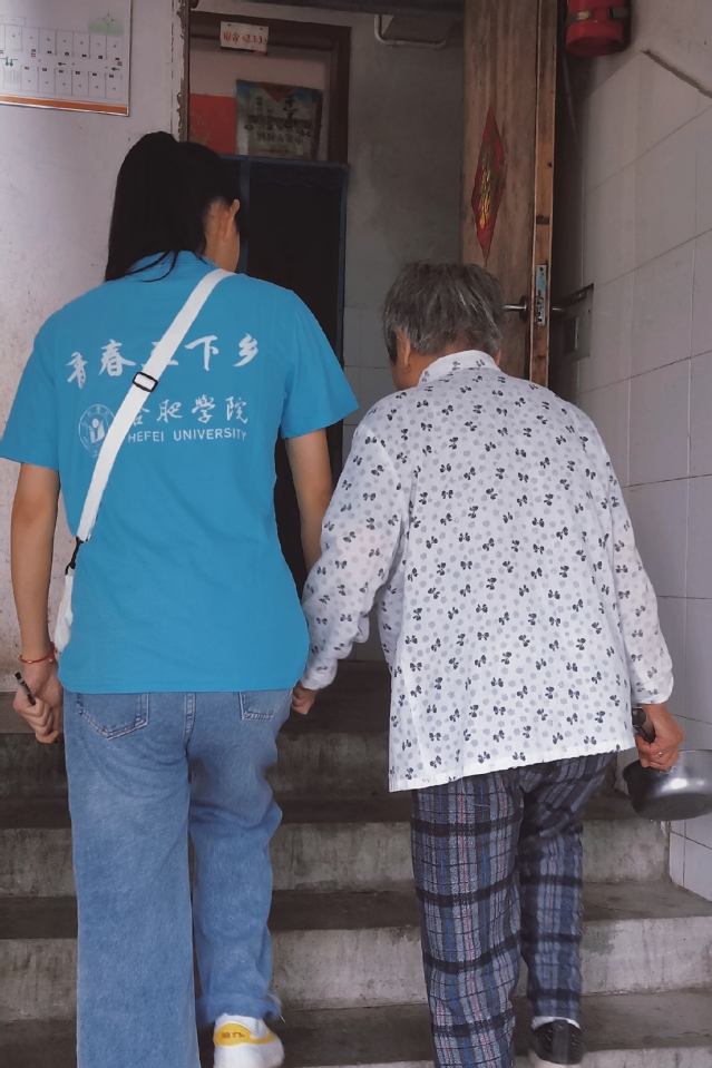 上午9點,團隊前往嚴店鄉五保供養服務心看望老人起初老人們初見成員們略顯靦腆隨著交談的深入老人們逐漸與成員們熟絡了起來他們和成員們聊起了家常,向同學們分享他們的生活日常。期間隊員們還看望了兩位老黨員,她們向同學們講述了在年輕時獲得三八紅旗手的故事,回顧黨過去的光輝歷史。隊員們從兩位老黨員的故事中看到了作為黨員的那份堅持。當隊員們問起對當代青年有什么期望時,奶奶們回答道:“永遠跟黨走。”上午的探訪活動在一片歡聲笑語中結束,成員們與老人們合影留念后離開。
