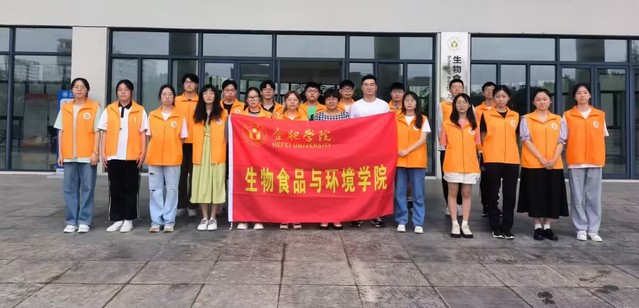 出發前,生物食品與環境學院黨委副書記(主持工作)李秀娟與團隊成員于生化樓前一同拍照留念。