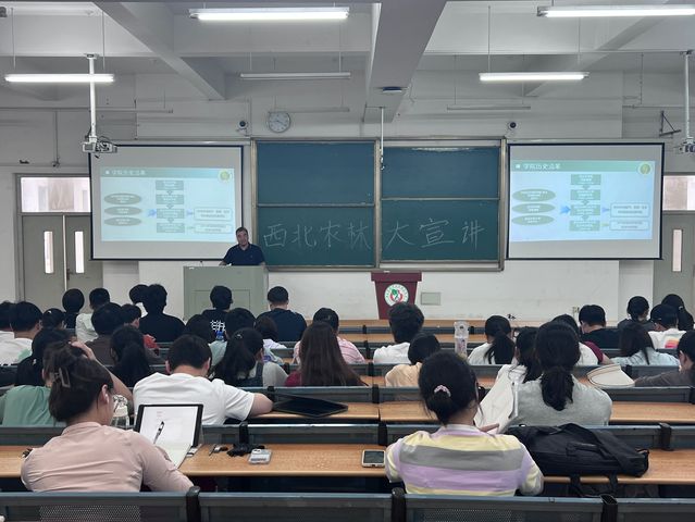 活動伊始,陳坤明首先介紹了西北農林科技大學的歷史沿革、學科優勢和科研成果,并著重強調了生命科學學院在培養創新人才、推動科研創新方面所取得的成就。隨后深入介紹了西北農林科技大學教授們的研究方向,全面展示了生命科學領域的廣闊前景和無限可能。緊接著,陳坤明就學院專業碩士點2024年招生計劃、人才培養、獎助體系、未來就業等方面進行了宣講,同時回答了同學們關心的一系列問題。