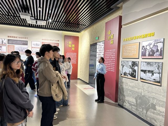 第二小分隊赴合肥市山南鎮小井莊開展集中實踐教學活動,共有110余名師生代表參加。小井莊是中國農村改革的發源地,習近平總書記指出:“萬里同志大力支持和推廣肥西縣‘包產到戶’和鳳陽縣小崗村‘包干到戶’的做法,推動全省農業管理體制變革。”位于小井莊的中國農村包產到戶紀念館,是中國農村第一個紀念包產到戶的農民紀念館。在史料館中,同學們認真查看館內陳列的珍貴歷史照片、實物、數據資料、檔案書籍,被“敢為人先”的時代精神深深感染。如今的小井莊發展農村合作社,成功實現了農業產業的轉型升級,大力發展苗木花卉、經果林等現代農業,多維度呈現了鄉村振興成果。