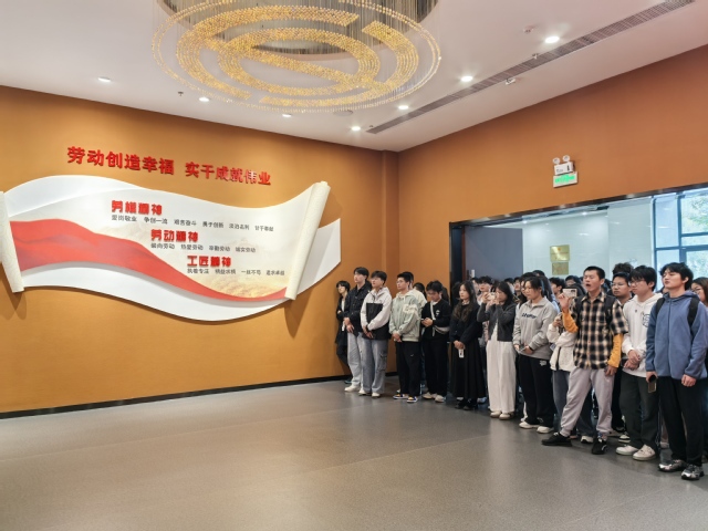 第三小分隊赴合肥勞模工匠館開展社會實踐活動,共有50余名師生代表參加。合肥市勞模工匠館是合肥市職工愛國主義教育基地和新時代職工文明實踐中心,以“勞動創造幸福”為核心主題,由勞模事跡、工匠風采、發展成果展、工運史展四部分組成,全方位、多角度、多層次展示了不同歷史時期合肥市各級各類勞動模范、能工巧匠的先進事跡、匠心工藝、創新成果。在勞模工匠館,同學們在講解員的引導下,深入了解了一等渡江功臣馬毛姐、身邊的“綠衣使者”鄭愛軍等各行各業勞模人物的生動事跡,參觀了交通、電力、燃氣等行業不同時期勞模工匠的實物資料。同學們還體驗了展館內的各種聲光電設備,切身感受了合肥“芯屏汽合、集終生智”等新興產業的發展成果。參觀結束后,大家紛紛表示要弘揚“勞模精神、勞動精神、工匠精神”,在學習、生活和未來的工作中用辛勤勞動書寫新時代的華美篇章。(圖/文:李翠萍、李建瑞、張亞)