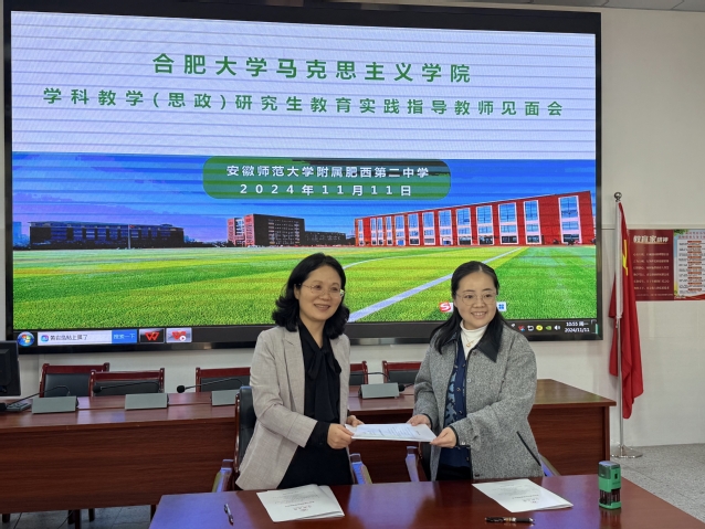 為提升我院研究生的專業水平和實踐能力,加強課堂理論知識與具體實踐的結合,根據專業學位碩士研究生人才培養方案要求和教學計劃安排,11月11日上午,我院蘇冰副院長帶領5名2024級學科教學(思政)研究生赴安徽師范大學附屬肥西第二中學開展為期兩周的教育見習活動。