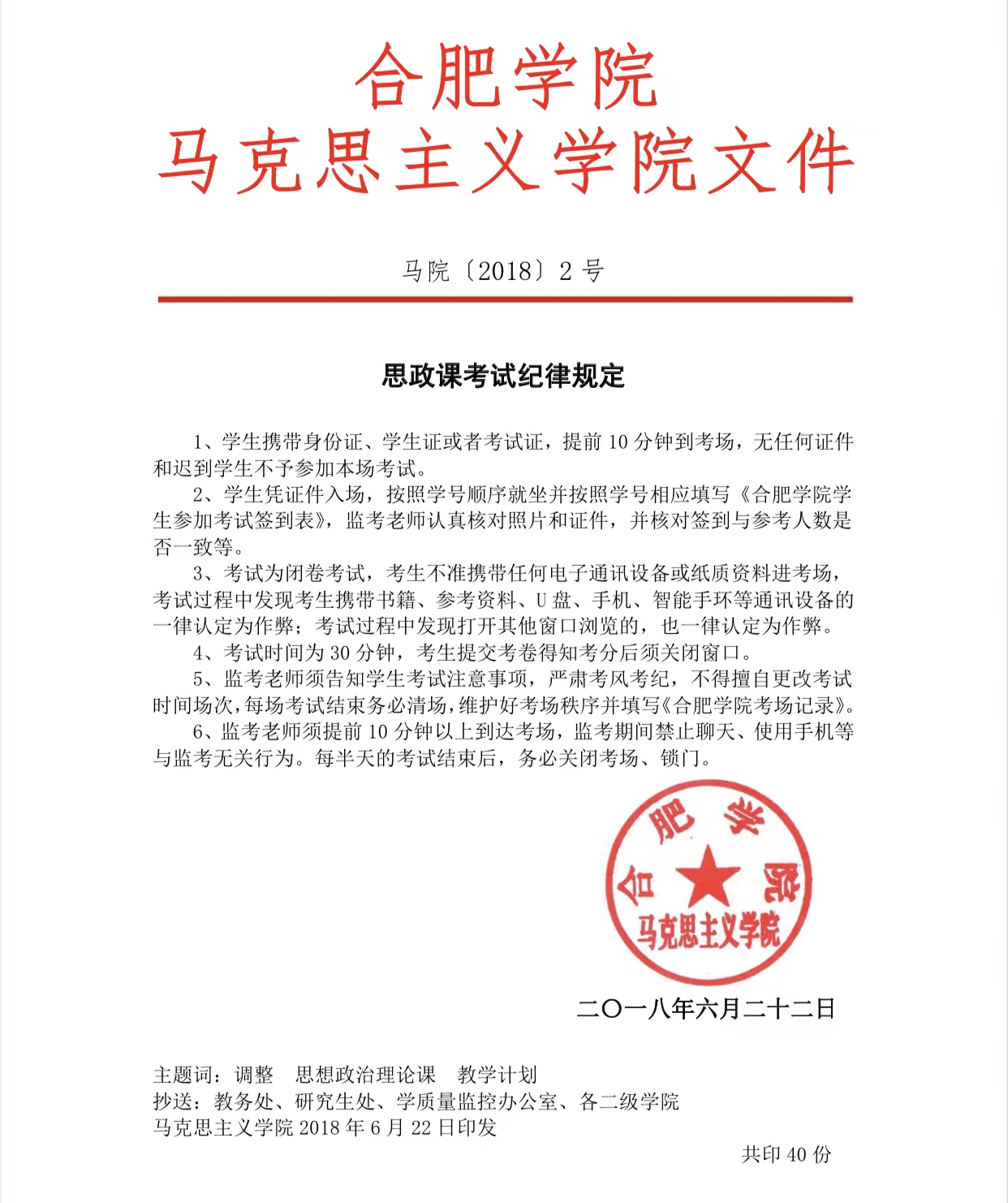 思政課考試紀(jì)律規(guī)定(馬院〔2018〕2號(hào))