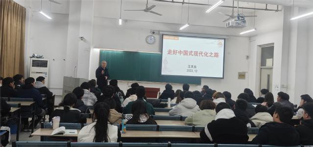王其東書記圍繞中國式現(xiàn)代化的歷史演變、發(fā)展現(xiàn)狀展開授課。他首先回顧了近代百年在黨領(lǐng)導下中國人民探索中國式現(xiàn)代化的漫漫長路,講述了新中國成立后特別是改革開放以來的理論探索和實踐活動,重點講述了黨的十八大以來成功推進和拓展中國式現(xiàn)代化取得的變革與成就。接著,深入闡述了中國式現(xiàn)代化的基本特征,是人口規(guī)模巨大的現(xiàn)代化,是全體人民共同富裕的現(xiàn)代化,物質(zhì)文明和精神文明相協(xié)調(diào)的現(xiàn)代化,人與自然和諧共生的現(xiàn)代化,走和平發(fā)展道路的現(xiàn)代化。然后,全面分析了中國式現(xiàn)代化與西方現(xiàn)代化的本質(zhì)區(qū)別,讓學生充分認識到,世界上既不存在定于一尊的現(xiàn)代化模式,也不存在放之四海而皆準的現(xiàn)代化標準,一個國家,一個民族,只有找到適合自己條件的道路,才能實現(xiàn)自己的發(fā)展目標。最后,王書記對青年在實現(xiàn)中國式現(xiàn)代化的重要作用提出四點希望,希望學生們要立大志,用理想之光照亮青春奮斗之路;要明大德,以崇德修身啟潤青春向善追求;要成大才,讓增長本領(lǐng)成就青春搏擊力量,擔大任,以敢于擔當書寫青春壯麗篇章。