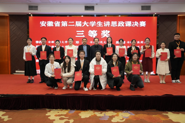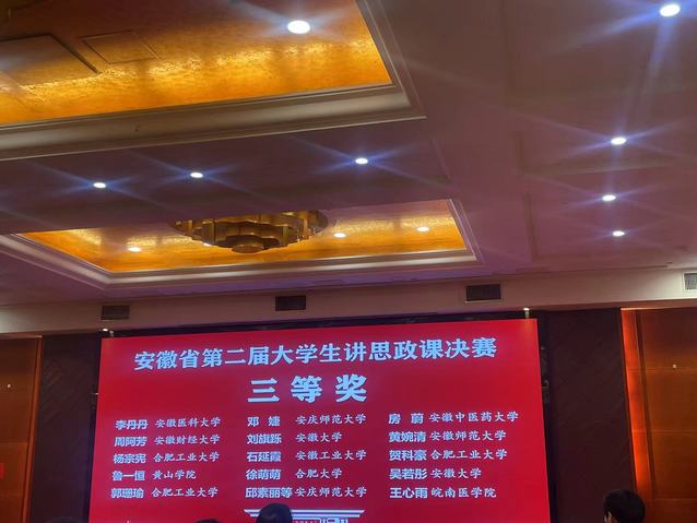 2023年12月22日,安徽省第二屆大學生講思政課決賽落下帷幕。我校徐萌萌團隊作品《新思想 新格局 新青年——建設具有強大凝聚力和引領力的社會主義意識形態》(指導教師:蘇冰,李雯雯)榮獲決賽三等獎。