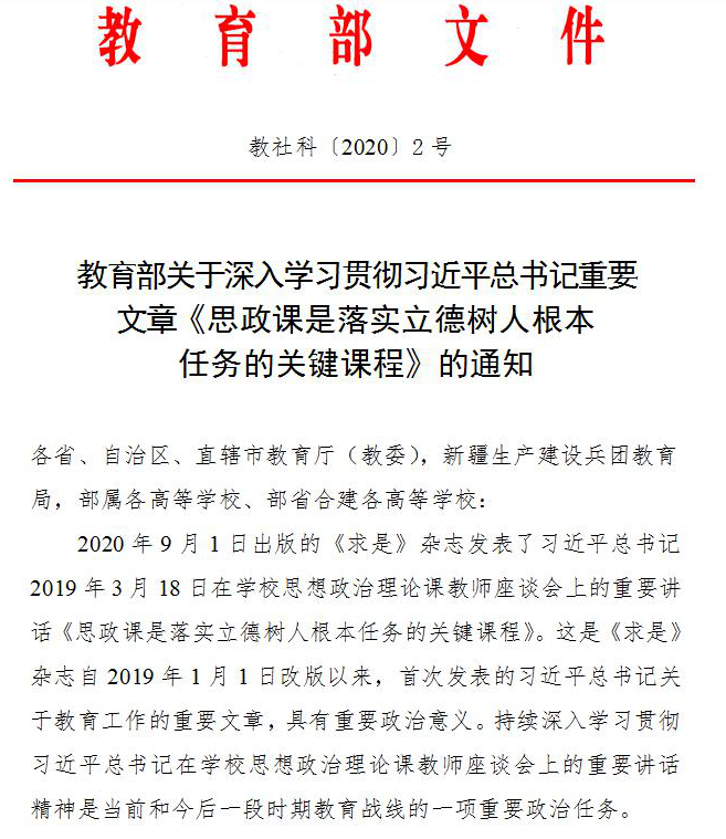 教育部關(guān)于深入學(xué)習(xí)貫徹習(xí)近平總書記重要文章《思政課是落實(shí)立德樹人根本任務(wù)的關(guān)鍵課程》的通知_.doc