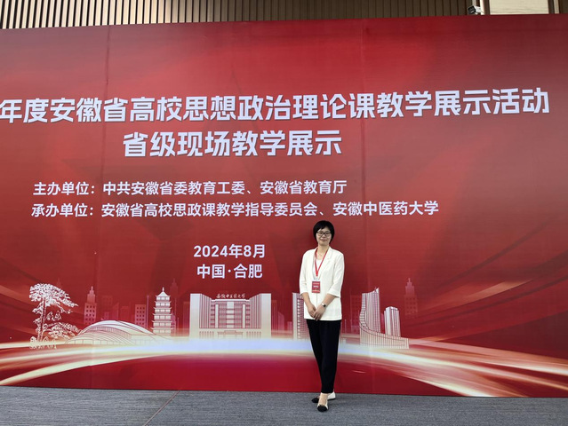 8月7日至8日,由中共安徽省委教育工委、安徽省教育廳主辦,安徽省高校思政課教學指導委員會、安徽中醫藥大學承辦的2024年度全省高校思政課教學展示活動省級現場教學展示在合肥舉行。我校馬克思主義學院教師胡彩林榮獲本科組一等獎,這是我校思政課教師參加教學比賽以來取得的最好成績。