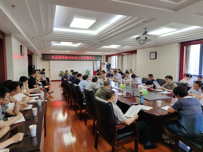 為有效應(yīng)對當(dāng)前疫情形勢,扎實(shí)做好期末和暑期學(xué)生管理服務(wù),深入推進(jìn)征兵工作,學(xué)校于6月29日在九樓東會議室召開疫情防控與征兵工作專題會議。學(xué)校黨委副書記劉建中出席會議,相關(guān)職能部門負(fù)責(zé)人和各二級學(xué)院黨委副書記、學(xué)工辦負(fù)責(zé)人、畢業(yè)班輔導(dǎo)員參加,會議由校黨委委員、學(xué)工部部長、學(xué)生處處長朱濤主持。