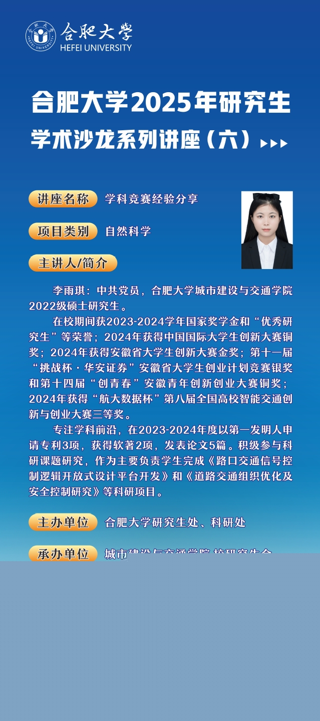合肥大學(xué)2025年研究生學(xué)術(shù)沙龍系列講座(六)
