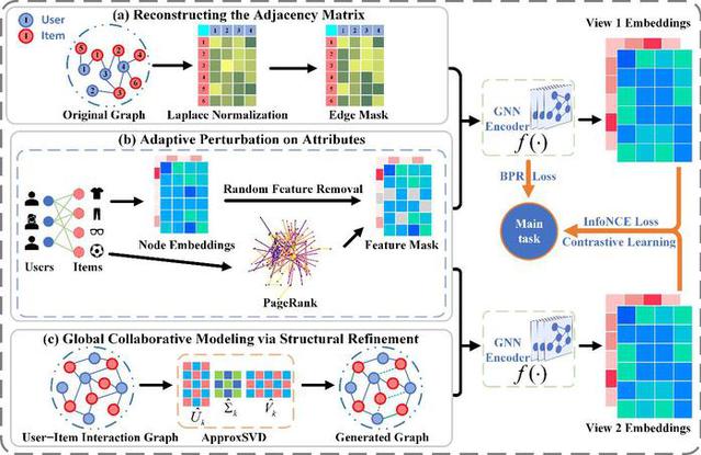 圖增強策略優化圖對比學習的推薦系統結構圖