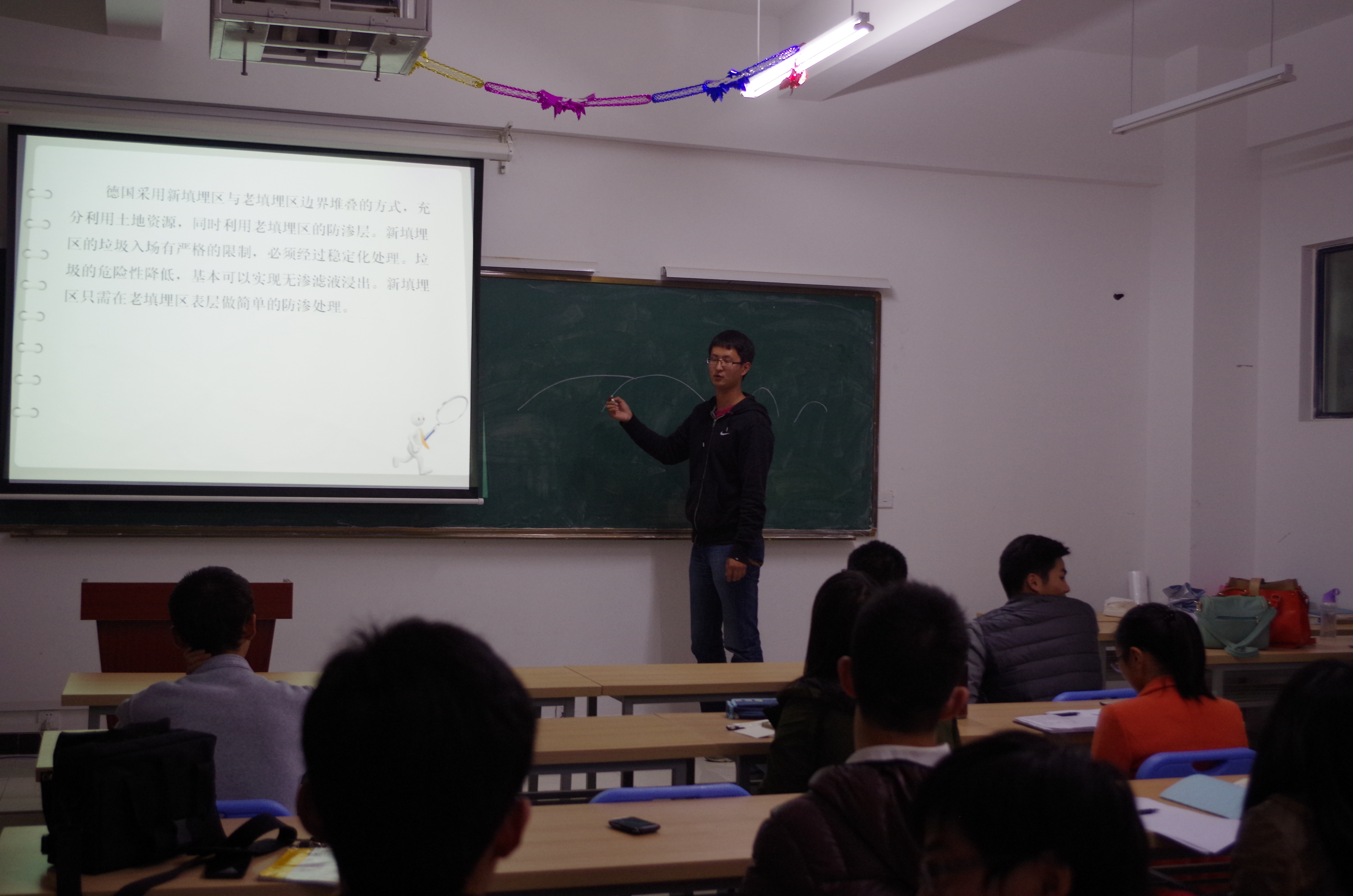 11月9日晚,由EE精英社舉辦的德國垃圾處理專題講座在生化樓南205教室舉行,講座的主要內容是:DSD垃圾分類雙系統、RDF垃圾衍生燃料、可再生技術、生物質與沼氣實驗、垃圾填埋技術和風力發電技術。