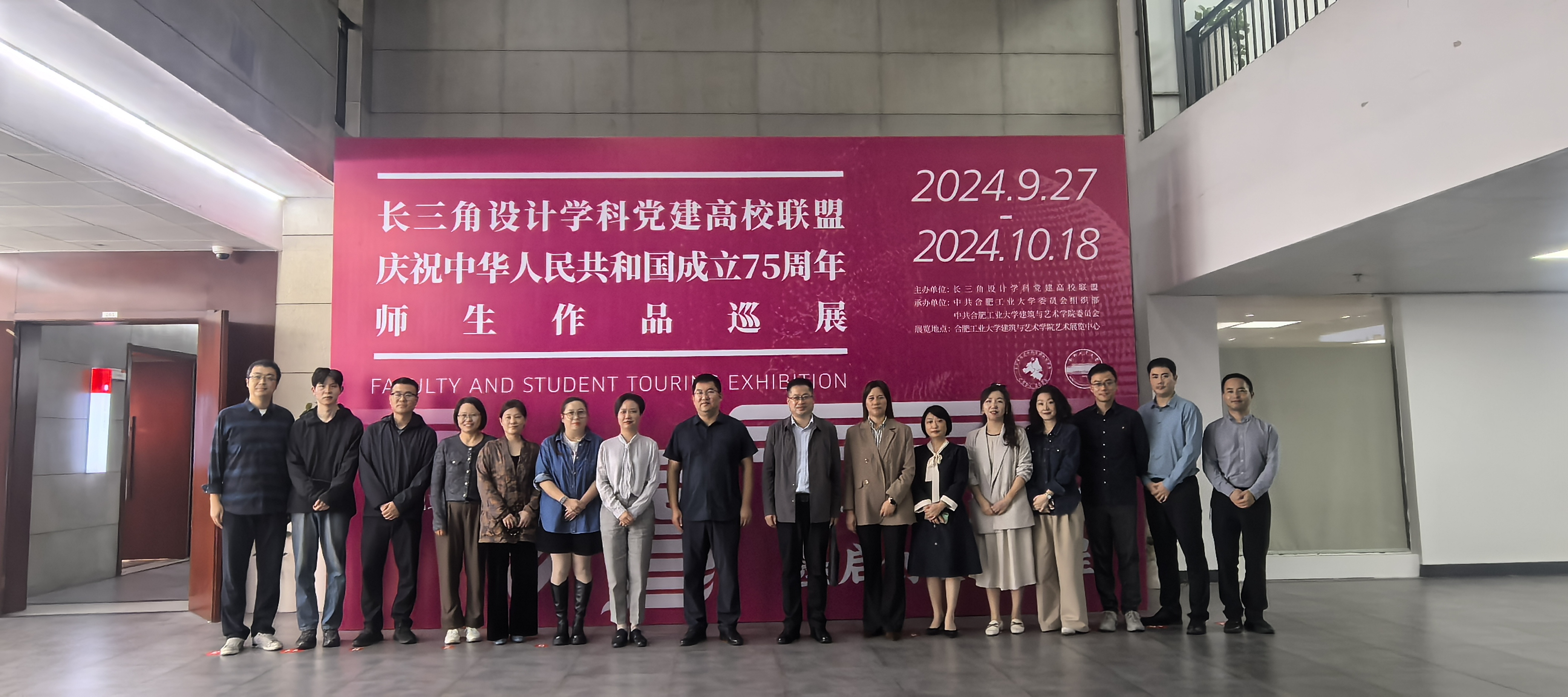 合肥工業大學大學建筑與藝術學院黨委書記孫建海首先對設計學院黨委一行的到來表示歡迎并帶領大家參觀了“七十五載風華頌,墨啟創設新征程”——慶祝新中國成立75周年師生作品巡展。展覽旨在通過藝術的方式全面展示建國75年以來我們偉大的黨和國家所取得的豐功偉績,謳歌新時代、奮進新征程。隨后,孫建海書記還帶領大家參觀了徽派建筑文化展示中心和校美育基地。