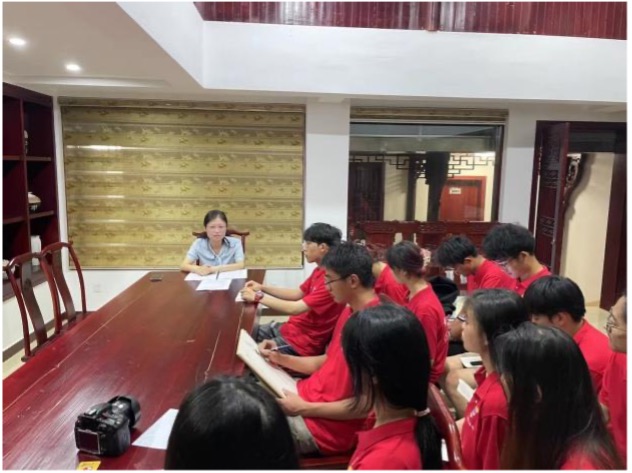 晚七點半,在結束一天的工作后,指導老師吳嫻在駐地會議室為暑期“三下鄉”16名隊員上團課,主要內容是開展習近平總書記在中國共產主義青年團成立100周年大會上的重要講話精神、十九屆六中全會公告和憲法教育宣傳的集體會議。在會上,吳嫻老師帶領我們集中學習了習近平總書記在中國共產主義青年團成立100周年大會上的重要講話精神,號召新時代的廣大共青團員要做理想遠大、信念堅定的模范,隊員們表示時刻謹記五四運動先輩們英勇就義的愛國精神,在弘揚五四愛國精神的同時,我們要刻苦學習,提高自身素養,為祖國的繁榮建設添磚加瓦。其次,吳嫻老師向隊員們介紹十九屆六中全會審議通過的兩個文件《中共中央關于黨的百年奮斗重大成就和歷史經驗的決議》、《關于召開黨的第二十次全國代表大會的決議》,最后吳嫻老師帶領我們學習了憲法,表示憲法是國家的根本大法,是治國安邦的總章程,具有最高的法律地位、法律權威、法律效力。要求大家認真學習憲法,并在生活和學習中以憲法為行動準則,做守法懂法的大學生。會上,吳嫻老師詢問隊員們三下鄉五天以來的收獲與感想,隊員們表示深入梧川村了解了革命先烈的英勇事跡,胡明、洪琪等英烈的光輝形象在隊員們的腦海里揮之不去,隊員們深感現在的幸福生活來之不易,應當堅定信念、緊跟黨走、無愧胸前的團徽,用青春激揚為中華民族的偉大復興而奮斗。