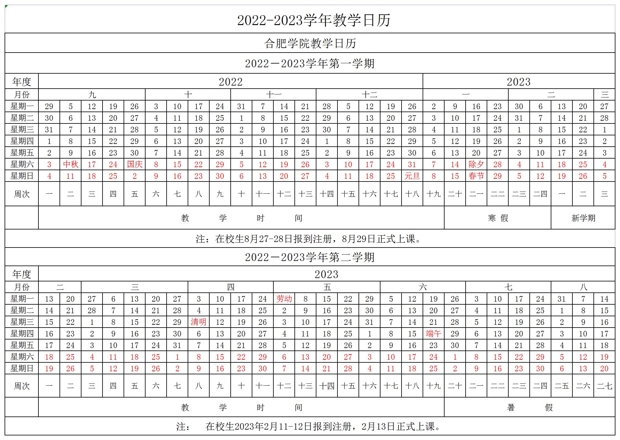 2022-2023學年教學日歷