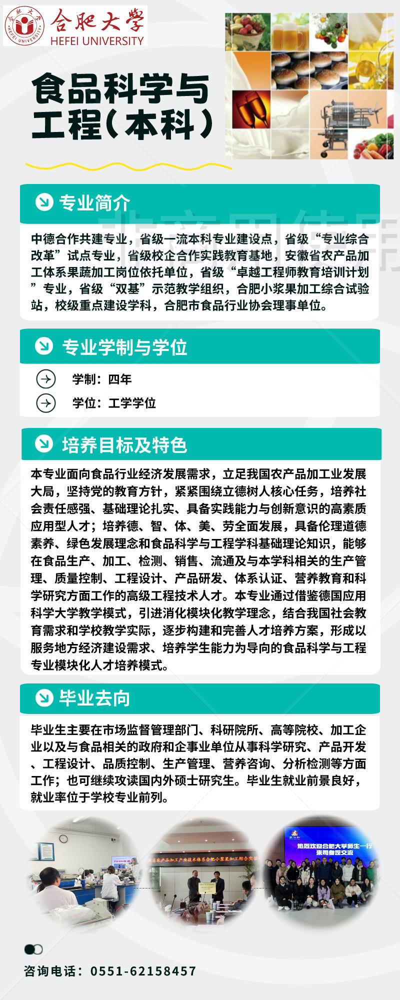 食品科學與工程(本科) 咨詢電話:0551-62158457