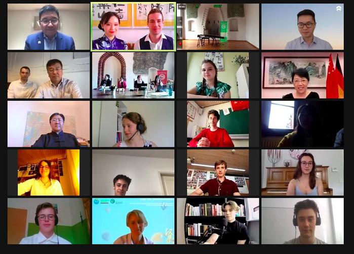 今年比賽主題為“追夢(mèng)中文,不負(fù)韶華”,比賽采取直播和錄播相結(jié)合的方式進(jìn)行,分為主題演講、知識(shí)問(wèn)答和才藝測(cè)試三個(gè)環(huán)節(jié),經(jīng)過(guò)初賽遴選,全德孔院推薦的11名學(xué)生進(jìn)入決賽。比賽當(dāng)日,云端參賽的選手們以精彩的演講、答題和互動(dòng)展現(xiàn)了良好的語(yǔ)言功底、才藝水平以及對(duì)中國(guó)文化知識(shí)的了解,受到觀眾好評(píng)。在四個(gè)多小時(shí)的角逐后,施特拉松孔院推薦的謝明獲得一等獎(jiǎng),魯爾孔院推薦的馬潔菲和韓皓軒獲得二等獎(jiǎng)。馬潔菲被評(píng)為“最佳人氣選手”,張?jiān)苿偙辉u(píng)為“最佳指導(dǎo)教師”。本屆比賽冠軍將代表德國(guó)參加“漢語(yǔ)橋”世界中學(xué)生中文比賽決賽。
